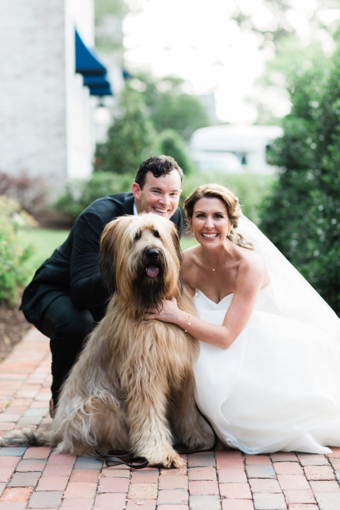 As much as we would love to be the ones to hold onto your pup during the ceremony, it just isn’t possible. Prior to the wedding day, we ask that you find a person who your dog knows well and who is not attending the wedding who can step away from the ceremony site if your baby gets antsy or needs a potty break. We usually recommend that this person has plenty of treats, water and knows how to handle your dog. If possible, we even recommend the handler meet earlier in the week with your puppy so they get reacquainted and aren’t having a hard time on the wedding day!